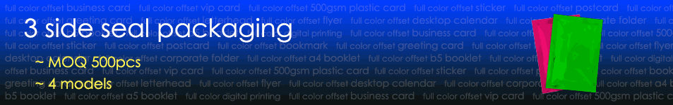 - 3 Side Seal Packaging size tolerance: +- 2mm